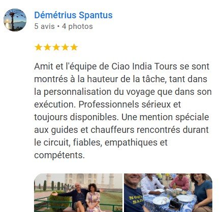 Ciao India Tours est l'une des meilleures agences de voyages en Inde. Nous sommes un tour-opérateur local de confiance, enregistré auprès du gouvernement indien et reconnu pour son service exceptionnel. Créez votre voyage 100 % sur mesure avec nous. En tant qu'agence locale en Inde, nos tarifs sont sans intermédiaires ; réserver avec nous vous permet donc de faire des économies sur votre voyage. Nous garantissons un service et des prix excellents. Nos professionnels ont aidé de nombreux voyageurs à réaliser leur rêve de voyage en Inde. Ils parlent plusieurs langues étrangères, dont l'italien. Pour recevoir un devis sous 24 heures, contactez-nous simplement via notre site web.